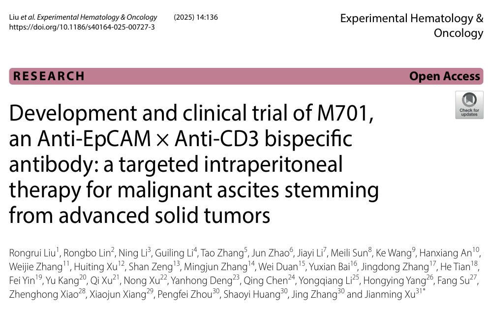 金年会动态M701治疗上皮性实体瘤引发的恶性腹水Ⅱ期临床成果登《EHO》,无穿刺生存期显著延长